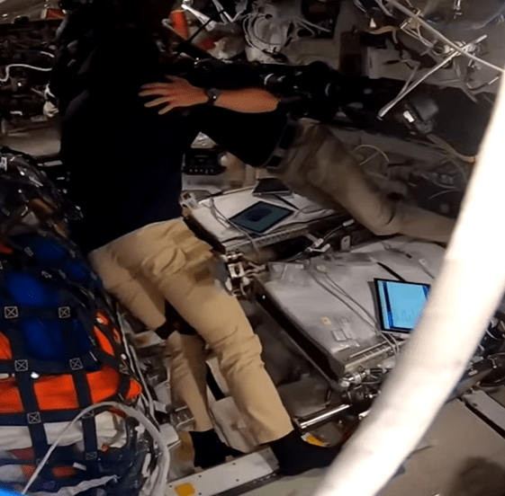 Seconds later, Canadian mission specialist Jeremy Hansen forms a heart with his hands toward Orion’s onboard camera, with mission specialist Christina Koch next to him and pilot Victor Glover in the back. Screnshoot taken from NASA official YouTube Channel.