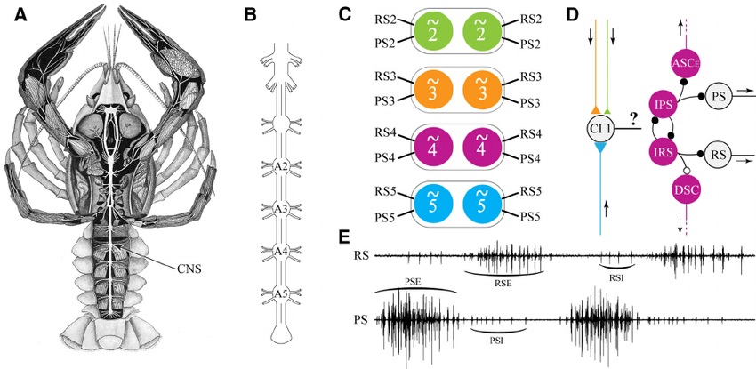 Smarandache-Wellmann, C. Weller, C. & Mulloney, B. (2014) Mechanisms of coordination in distributed neural circuits: Decoding and integration of coordinating information. ResearchGate, The Journal of Neuroscience: The official journal of the society for Neuroscience. https://www.researchgate.net/figure/Organization-of-the-neural-circuits-that-control-crayfish-swimmerets-A-The-crayfish_fig1_259767833